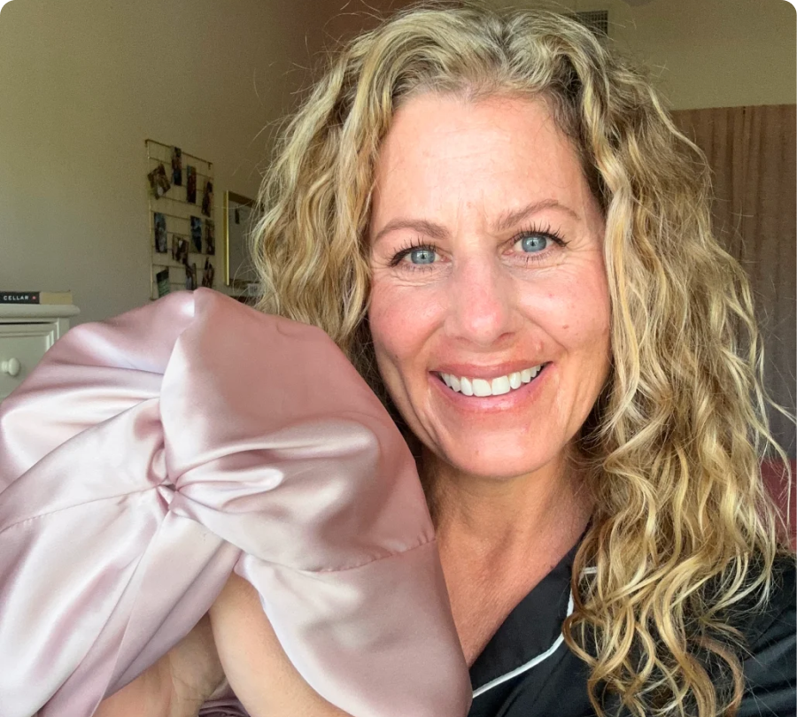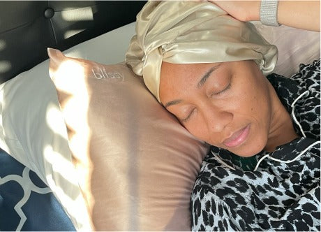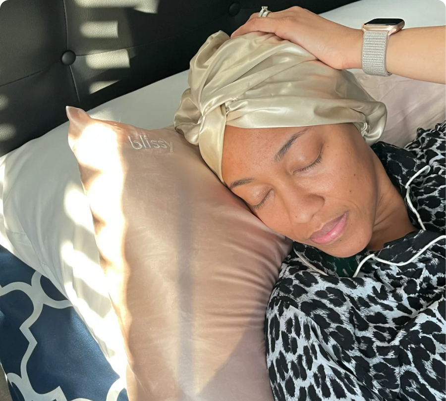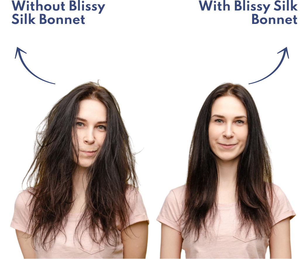Look adorable in your Blissy Bow Bonnet every night and wake up to healthier, shinier hair and easier mornings.
